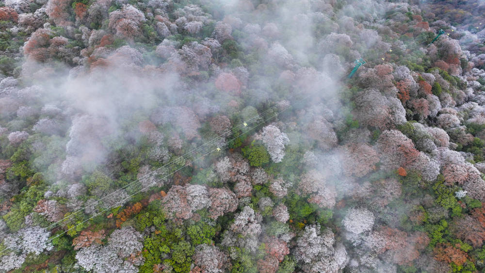 以上图片:2025年11月18日在贵州梵净山景区拍摄的雾凇红叶景观。(无人机照片)CICPHOTO/李鹤 摄